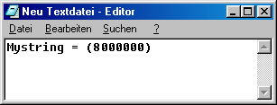 Durch das ständige Öffnen und Schließen von Anwendungen verbleiben Lücken im Arbeitsspeicher, welche mit der Fragmentierung einer Festplatte zu Vergleichen ist. Die Daten im Arbeitsspeicher geraten derart durcheinander, dass der Zugriff darauf etwas langsamer und träger wird. Dieser lästigen Fragmentierung sollten Sie nach ein paar Stunden arbeit vorbeugen indem Sie folgenden kleinen Script erstellen, welchen Sie ab sofort per Doppelklick starten. Es ist so genannter VBS Script, weshalb Sie die VBS Unterstützung benötigen, welche allerdings schon im Internet Explorer 6.0 integriert ist. Dieses Script bringt den Arbeitsspeicher wieder in alte Ordnung zurück und defragmentiert ihn. 1. Klicken Sie mit der rechten Maustaste auf den Desktop und wählen Sie “Neu/Textdatei”. Diese taufen Sie nun auf den Namen “Arbeitsspeicher defragmentieren”, wobei die Bezeichnung keinerlei Rolle spielt, und öffnen Sie. 2. Schreiben Sie nun die simple Zeile "Mystring = (16000000)" hinein, wenn Sie mehr als 128 Megabyte Arbeitsspeicher besitzen. Wenn Sie 128 Megabyte oder weniger Arbeitsspeicher besitzen lautet für Sie die Zeile “Mystring=(8000000)”.  3. Klicken Sie auf “Datei/Speichern unter” und wählen Sie unter “Dateityp” nun “Alle Dateien”. Nennen Sie das Script nun “Arbeitsspeicher defragmentieren.vbs”.  Nun ist es auf ihrem Desktop abgelegt und jederzeit einsatzbereit: Einfach doppelklicken! Wundern Sie sich nicht, wenn Ihr Computer, nachdem Sie den Doppelklick ausgeführt haben, (scheinbar) nichts unternimmt. Da die Zugriffszeiten des Arbeitsspeichers blitzschnell sind, ist die Defragmentierung innerhalb einer Sekunde erledigt! |