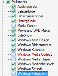 | IMAPIv2 Brennunterstützung | Damit brennen Programme wie z.B. der Explorer oder Media Center CDs/DVDs. Wenn Sie das lieber mit einem Drittherstellerwerkzeug wie z.B. Nero durchführen, können Sie diese Unterstützung abschalten. |