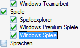 | Spieleexplorer | Im Startmenü finden Sie den Eintrag "Spiele". Dort tragen sich auch nachträglich installierte Spiele oftmals ein. Wenn Sie das nicht benötigen, können Sie auch hier ein Häkchen zur Entsorgung setzen. |