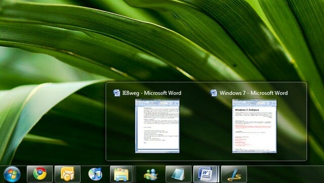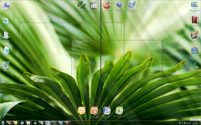 Aero Peek: By clicking on the small transparent rectangle to the right of the clock, all windows instantly become transparent and you can quickly take a look at the desktop.