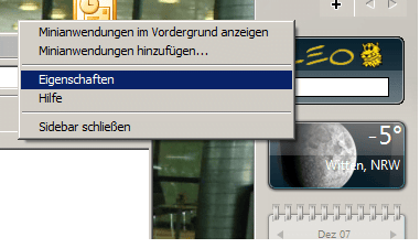 3. Mit der Rechten Maustaste können Sie nun die Eigenschaften der Sidebar betrachten.