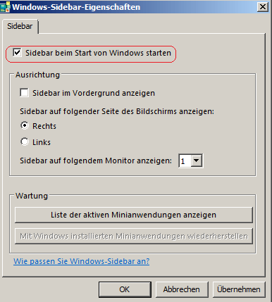 Durch einen unüberlegten Eingriff in die Einstellungen des Autostarts ist es passiert: die Sidebar startet nicht mehr von selbst. Dies ist zwar ärgerlich, aber  kein Grund  zu verzweifeln.