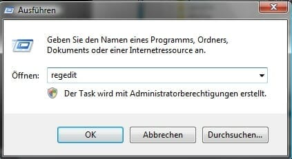 Zuerst müssen Sie über "Windowstaste + R" den "Ausführen"-Dialog öffnen. Tippen Sie dort nun "regedit" ein und bestätigen Sie mit "OK".