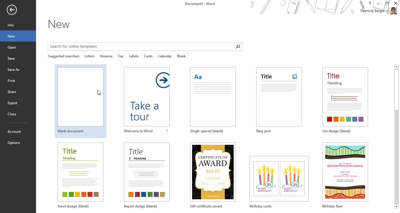 Im linken Bereich sieht man zudem die zuletzt geöffneten Dateien. Rechts oben findet man stets den eigenen Microsoft-Account, sofern man angemeldet ist. In diesem Fall kann man die Dokumente per Mausklick in der Cloud (auf SkyDrive) speichern und mit anderen Benutzern kinderleicht zusammenarbeiten.
