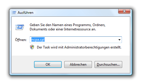 1. Drücken Sie „Windows-Taste+R“ und tippen Sie in die „Ausführen“-Zeile "ncpa.cpl“ ein.