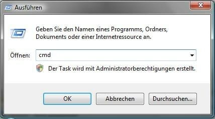Drücken Sie "Windowstaste + R" und tippen Sie im folgenden Fenster "cmd" ein.