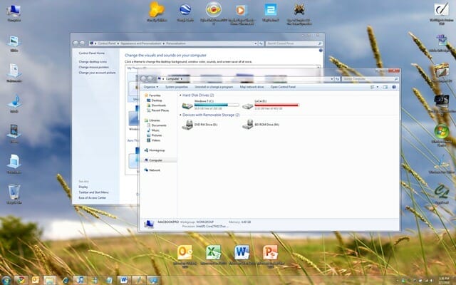 Here you will find dozens of excellent Windows 7 themes: The themes are made up of one or more background photos (which change automatically) and a specific color scheme for windows. For example, "Autumn Grass" looks like this: