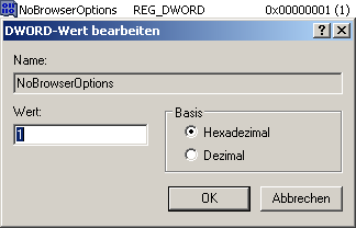 | Viele Administratoren müssen jegliche Benutzer von Funktionen, Programmen und Daten eines Rechners fernhalten und diese auf den ihnen zugeteilten Bereich beschränken. Sie haben in den anderen Artikeln zur Windows-Sicherheit bereits erfahren, wie man Systemsteuerungselemente und viele weitere Desktopfunktionen sperrt, doch der Internet Explorer, welchen die User während der Arbeit ja meist nicht benutzen sollten, bleibt weiterhin ungeschützt. Windows Tweaks hat für Sie neue Policies (sog. Rechtevergebungen) für den Internet Explorer 6.0 herausgefunden, welcher bei Windows XP schon mit im Paket war. Die ersten zwei Schritte erläutern ihnen, wie Sie zu der Stelle kommen, an welcher Sie die Policies anwenden können, während man ab hier sämtliche geheimen Sicherheitseinstellungen kennenlernt und erfährt, wie diese anzuwenden sind. 1. Klicken Sie nacheinander auf Start/Ausführen und tragen Sie regedit in die erscheinende Befehlszeile ein, um den Windows-Registrierungseditor zu starten.            2. Navigieren Sie nun durch die Schlüssel HKEY_CURRENT_USER\Software\ Policies\Microsoft\Internet Explorer\Restrictions. In einigen Fällen ist dieser Pfad nicht vollständig, weshalb Sie ihn über Neu/Schlüssel wie unten abgebildet rekonstruieren müssen.                   3. Klicken Sie nun mit der rechten Maustaste ins rechte Teilfenster und selektieren Sie Neu/DWORD Wert. Diesen selbsterstellten Wert taufen Sie auf den Namen NoBrowserOptions, was bedeutet, dass der Zugriff auf die Optionen, welchen Sie normalerweise unter Extras/Internetoptionen erhalten gesperrt ist. Damit dies wirksam wird, müssen Sie doppelt auf diesen Eintrag klicken und eine 1 hineinschreiben.             Anstatt dem Wert NoBrowserOptions sind noch folgende andere Funktionsbeschränkungen möglich: NoFindFiles: Die Suchfunktion des Internet Explorers wird in den Ruhestand geschickt.