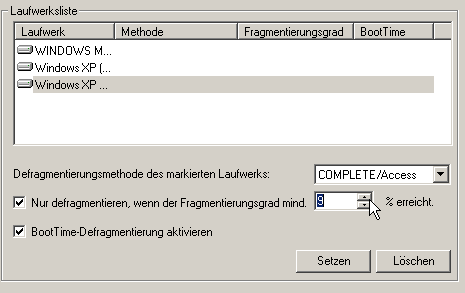 Das in V4 bekannte Auto-Defrag (Threshold)-Verfahren ist nun in diesen Jobs mit enthalten und bietet die, bis ins tiefste Detail anpassbare, Aufräumaktion ab einem bestimmten Fragmentierungsgrad an. Hier sehen wir ebenfalls die BootTime-Defragmentierung, die sich um die Defragmentierung der MFT (Master File Table, hier speichert Windows NT/2000/XP die Informationen zu Dateien: Name, Änderungsdatum, Zugriffsrechte etc.) und der Registry kümmert. Beachten Sie, dass diese nun nicht mehr über die Einstellungen verfügbar ist, sondern über die Jobs.  In den Jobs lassen sich auch folgende zwei Technologien einsetzen: O&O AdvancedReportEngine Die ARE gibt das Fragmentierungsbild bzw. die Ergebnisse von V6 über einen bestimmten Zeitraum aus. O&O IntelligentPowerControl Technology Besonders Notebooks profitieren von dieser Stromsparfunktion: Die Defragmentierung hält, bei Akkubetrieb, an und wird sofort weitergeführt, wenn der Rechner wieder an einer externen Stromversorgung hängt. |
