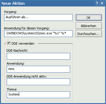 Falls Sie nach der Installation von O&O Defrag V6 Probleme haben ein Verwaltungsprogramm wie z.B. gpedit.msc zu benutzen so hat Windows Tweaks eine Lösung für Sie. Diese gilt auch für Benutzer, die aus Versehen, den Dateityp .msc löschten und die komplexe Wiederherstellung nicht alleine bewältigen. Verwaltungsprogramme haben immer das Dateiformat MSC, welches die Microsoft Management Console öffnet. In dieser Konsole befinden sich dann Verwaltungsanwendungen wie die Defragmentierung oder das Gruppenrichtlinienprogramm. Damit Sie auch nach der Installation von O&O Defrag V6 diese Konsolen benutzen können müssen Sie folgendermaßen vorgehen: 1. Klicken Sie doppelt auf Arbeitsplatz und wählen Sie Extras > Ordneroptionen. Holen Sie nun das Register Ansicht nach vorne und scrollen Sie in der Liste soweit nach unten bis Sie den Dateityp MSC gefunden haben. 2. Sobald Sie diesen Dateityp nun markiert haben ist ein Druck auf den Button Erweitert fällig. Schreiben Sie nun oben, neben dem Knopf Anderes Symbol.., die Bezeichnung Microsoft Common Console-Dokument hinein. 3. Löschen Sie nun in der Liste Aktionen: sämtliche Einträge, bis das Fenster komplett leer ist. 4. Klicken Sie jetzt auf Neu und tragen Sie die folgenden Daten, wie unten angegeben, ein: Vorgang : Ausführen als... Anwendung für diesen Vorgang : C:\WINDOWS\system32\mmc.exe "%1" %* DDE Hacken : Ja DDE Nachricht : Anwendung : mmc DDE Anwendung nicht aktiv : Thema : System Das Fenster sollte nun folgendermaßen aussehen...  5. Wiederholen Sie nun Schritt 4 und tragen Sie dieses mal folgende Daten ein: Vorgang : Im Autorenmodus öffnen Anwendung für diesen Vorgang: C:\WINDOWS\system32\mmc.exe /a "%1" %* DDE Hacken : Ja DDE Nachricht : Anwendung : mmc DDE Anwendung nicht aktiv : Thema : System 6. Und ein weiteres und letztes Mal müssen Sie diesen Vorgang von Schritt 4 wiederholen und dann die unten angegebenen Texte eintippen: Vorgang : Öffnen Anwendung für diesen Vorgang : C:\WINDOWS\system32\mmc.exe "%1" %* DDE Hacken : Ja DDE Nachricht : Anwendung : mmc DDE Anwendung nicht aktiv : Thema : System Nachdem Sie nun zweimal mit OK bestätigt haben, werden Sie sich nun wieder über eine funktionierende Verwaltungsprogramme freuen. |