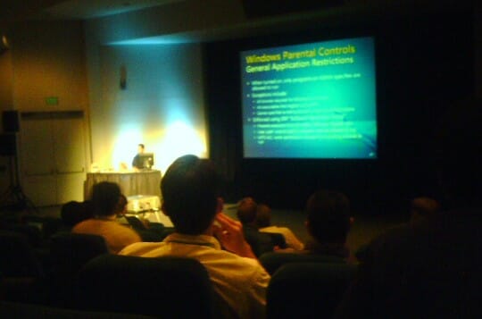 - Netflix und Windows Graphic Foundation: Ein Beispiel der Zukunft? [Video, 155 MB] | | |  | | | |  | | | |  | | | | Zoom-In: Windows Graphic Foundation (Avalon) 14 Uhr, 13. September Andrew Sirotnik, Marketing Manager von North Face und Vie Gundotora (Microsoft) stellen in einer speziellen Windows Presentation Foundation vor und zeigen, wie Avalon beeindruckende Möglichkeiten in der Onlinewelt ermöglicht. Sie sehen beeindruckende Videos eines Abenteuerurlaubs mit flüssigen, voll-texturierten Bedienelementen. - Windows Graphic Foundation und North Face [Video, 60 MB] Das Ziel ist eine emotionale Verbindung zwischen Webdesignern/Herstellern und den Benutzern herstellen als diesen über eine müde HTML-Oberfläche einkaufern zu lassen. Northface und Avalon verwandeln den Shop in eine komplett neue Oberfläche Auf der WGF werden in Zukunft sämtliche Windows-Applikationen programmiert sein. Its the way we expect all Windows applications to be (Vie Gundotra, MS). Somit sehen wir in naher Zukunft Applikationen nicht nur mit schicken 3D-Effekten sondern auch entsprechend eingebetteten Videos. Mittels einfachem Mausklick können wir live unsere Urlaubsausrüstung bei Nort Face zusammenstellen und auch farblich gestalten. | | | |  | | | | Session: Enabling Parental Controls in Windows Vista 14:45 Uhr, 13. September Die nächste Session, Windows Parental Controls, zielt besonders auf besorgte Eltern ab : Zeitlimits sollen die Sessions der einzelnen Benutzer vom Admin via Oberfläche frei regelbar sein. Applikationen werden sich ca. 15 Minuten vor dem Ende einer Session melden und den Benutzer vor der drohenden Abmeldung warnen.. Die Parental Control Beschränkungen gelten nicht nur für Spiele sondern auch für Applikationen oder Internetseiten. Schlichtweg mit allen gefährlichen Inhalten, vor denen Sie Ihre Kinder schützen möchten.  Ein großes Dankeschön an Raymond Wisemann für die Fotos, da sowohl Akku als auch Ersatzakku dank der gewaltigen Keynote-Videos versagt haben Windows Parental Controls sind direkt mit dem Vista-eigenen Games Explorer verbunden: In ihm pflanzen sich alle installierten Spiele automatisch ein. Eine, vom Spieleentwickler generierte XML-Datei (GDF = Game Definition File) enthält spezielle Informationen, Downloads, Patches oder Parental Control Informationen für das jeweilige Spiel. Web Restriction: Keine Pornoseiten oder illegalen Pages mehr? Die Web Restriction (Interneteinschränkung) lässt sich auf bestimmte Internetseiten beschränken (z.B. sämtliche Seiten außer jenen in der Erlaubt-Liste) oder auf bestimmte Kategorien (z.B. Pornographie, Fanseiten von gewalttätigen Spielen etc.) eingrenzen. Meldet sich somit ihr Kind in Windows Vista an, wird der von Ihnen voreingestellte Contentfilter aktiviert und verhindert die Anzeige von HTML- oder generellen Webcode. Somit schützen Parental Controls nicht nur IE7 User sondern jegliche Applikationen, die Webseiten anzeigen (z.B. FireFox). Es gibt auch eine Funktion namens Partially Blocking, die gefährliche Inhalte einer ansonsten harmlosen Seiten (z.B. externe Links) ausblendet oder deaktiviert.