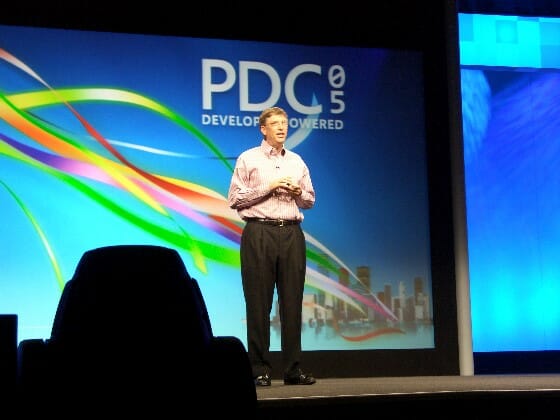 All diese Informationen können Sie sich in Form von MPEG-Videos ansehen: - Chris Keybnote über Windows Vista [Video, 155 MB] - Chris Keybnote über Internet Explorer 7.0 in Windows Vista [Video, 53 MB] | | |  | | | | Microsoft Office 12: Die brandneue Oberfläche im Fadenkreuz Microsoft verspricht, dass Sie sich mit der brandneuen Oberfläche von Office 12 60-80% Clicks sparen:  Wie auch Internet Explorer basiert Microsoft Office 12, der Nachfolger von Office 2003, auf einer Tab-basierten Oberfläche: Menüs werden durch Tabs ersetzt! Sie können auf dem Screenshot erkennen, dass der Tab Insert geöffnet wurde. Darunter finden wir nun äußerst übersichtlich passende Symbole, die wir sofort wiedererkennen und benutzen können. In seinem ersten Beispiel zu Excel geht er auf die Formatierung ein: Per Mausklick markiert er einige Zellen, klickt auf die Datenvisualisierung und wandelt somit die vorhandenen Daten in ansehnliche Fortschrittsbalken oder Diagramme um.  Je nach Aufgabe zeigt Office 12 auch verschiedene Tabs an: Befinden Sie sich beispielsweise in einer Zeile, werden entsprechende Operationen angezeigt (z.B. Zeilenlayout, Schriftart etc.). Klicken Sie aber auf einen leeren Bereich erhalten Sie komplett neue Optionen wie z.B. die Erstellung neuer Daten. - Weitere Infos zu Microsoft Office 12 von der PDC 2005 [Video, 79 MB] - Weitere Infos zu Office 12 direkt vom Microsoft Presseservice [Externer Link] Microsoft hat den Communities entsprechende Community Technology Previews von Windows Vista Beta 2 und Office 12 Beta 1 versprochen: Lesen Sie auf Windows-Tweaks in den kommenden Monaten mehr! | | |  | | | |  | | | | Bill Gates geht die nächsten Schritte Microsofts Chairman ermutigt alle Entwickler, bereit für die kommende Vista- und Officewelle zu sein und somit einen entscheidenden Schritt in die Zukunft zu gehen. Kurz darauf gibt er ab und Microsoft Plattform Vide President Jim Allchin tritt auf die Bühne: Direkt zu Beginn seiner Rede lädt er auf einer Maschine Windows 1.0 auf einer Steinzeitmaschine, die er dem Microsoft Museum in Redmond entnommen hat, und öffnet das vierfarbige Spiel Reversi. Er möchte auf diese Weise das 3. Jahrzehnt von Windows und die immense Zahl der steigenden PC-Verkäufe hervorheben.  - Bill Gates gibt ab: Jim Allchins Eröffnungsrede mit Windows 1.0 [Video, 49 MB] Die brandneue Crytek Engine Allchin zeigt die verbesserte Crytek-Engine, die wir schon in FarCry bewundern konnten: Die nächste Grafikgeneration für Spiele wird in wenigen Monaten veröffentlich. Die CryEngine unterstützt den dynamischen Wechsel zwischen Tag- und Nacht, mitsamt sämtlichen Wetter- und Lichtbedingungen. Laufen Sie mit ihrem digitalen Helden gegen Gräser, auf Sand, stoßen auf Bäume oder laufen in Sumpf reagiert die Oberfläche vollkommen realistisch (z.B. mit zurückschlagenden Blättern). Wir sehen diffuse Lichteffekte bei einem Blick in die Sonne oder helle Lichtquellen, wir sehen 100% realistische und sich bewegende Schatten, die sich nach der Position der Lichtquelle verhalten. Beeindruckt haben uns auch die wirklich voluminösen Wolkenformationen, die ohne Probleme möglich sind.  - Jim Allchin stellt die neue CryEngine vor [Video, 35 MB] Der Grund für diese (scheinbar unpassende) Präsentation ist den Vergleich zwischen Reversi und Crytek herzustellen und ihn in Kontext mit der Entwicklung zu Windows Vista zu stellen. Die Performance unter Windows Vista: Sind Tuningprogramme bald unnötig? Allchin lädt nun eine aktuelle Vista Build (mitsamt Wallpaper der ersten Longhorn-Mitteilungen aus 2001) und geht auf die brandneuen Tuningmöglichkeiten ein: Er verspricht, dass Vista ein sich selbst optimierendes System sein wird. Warum muss man sich als Anwender um Systemtuning kümmern? Warum muss er die Festplatte defragmentieren und Lösungen kaufen? Das sind Probleme der Hersteller und bleiben am Geldbeutel des Kunden hängen! Vista räumt auf!