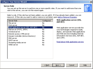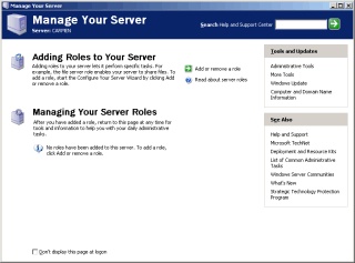 ...sehen Sie dann die Rollenverteilung des Servers. Die Arbeitsart wird durch diese Funktionen erheblich beeinflusst. Falls Sie Windows Server 2003 zum Arbeiten verwenden raten wir ihnen ab hier etwas zu verdrehen. Sie können sich hier z.b. für Datei und Druckserver, Mailservern oder Internetserver entscheiden.