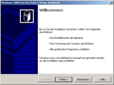 Der Service Pack 3 Assistent begrüßt Sie recht herzlich zur Installation der mächtigen Windows Verbesserungssammlung