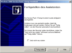 Es ist vollbracht: Windows 2000 wurde nun durch das Service Pack 3 auf den neuesten Stand gebracht. Es fehlt nur noch ein Neustart...