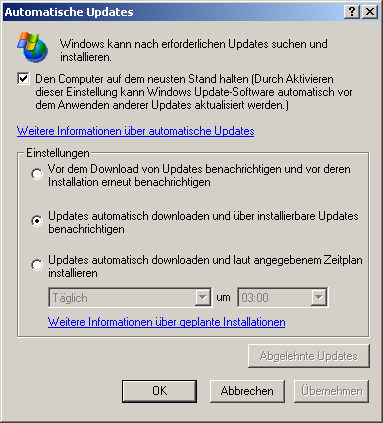 Die neue Windows 2000 Update Funktion (SUS) in der Systemsteuerung