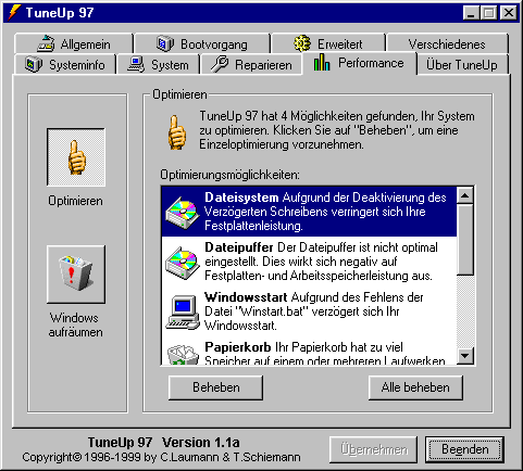 TuneUp Utilities 2006 - Der Weg in die Zukunft 8 Jahre später geht es nach den Versionen 2003 und 2004, die TuneUp den Weg in den internationalen Markt geebnet haben, mit großen Schritten zur Version 2006. Wir werfen einen Blick auf die bisher bekannten Funktionen und zeigen Ihnen, ob sich das Warten lohnt... Wie bereits bei den Vorgängerversionen können Sie sich auch bei TuneUp 2006 die lästige Installation von vielen kleinen Systemwerkzeugen (z.B. Datenretter, Speicheroptimierer etc.) sparen und haben eine zentralisierte Oberfläche. Diese ist wiederum eingeteilt in Anpassen & Informieren, Aufräumen & Reparieren, Optimieren & Verbessern, Verwalten & Kontrollieren und Daten retten & vernichten.  50% Entwicklungszeit wird nur in die Oberfläche und die Bedienung gesteckt: Man findet sich sehr schnell zurecht Insgesamt warten rund 330 Funktionen, sich in diese 5 Hauptrubriken verteilen, auf Sie. Erste Neuerungen zeigen sich z.B. in der Möglichkeit, den Microsoft Messenger zu deaktivieren und nicht gleich zu deinstallieren oder die Steuerung der Sicherheitsmeldungen des Windows Sicherheitscenters (Seit Service Pack 2 dabei). TuneUp geht auch mit der Zeit und unterstützt den immer populärer werdende FireFox-Browser: Versteckte Einstellungen können Sie hier per Mausklick verändern und beispielsweise die Geschwindigkeit des Seitenaufbaus erhöhen oder das Verhalten bei Pop-Ups anpassen. Erfolgreich verbessert wurde auch der TuneUp RegistryCleaner, der Ihre Windows Registrierung von unnützen oder fehlerhaften Einträgen befreit. Der neue TuneUp RegistryCleaner: Nach 12 verschiedenen Aspekten optimieren Sie Ihre Registry Permanente Registry-Schwierigkeiten ignoriert der RegistryCleaner endlich. Besonders interessant dürfte allerdings die neue Registry-Defragmentierung werden, die Lücken in der Datenbank schließt und den Zugriff erheblich beschleunigt: Windows startet anschließend schneller, die Fehlerwahrscheinlichkeit wird reduziert und Anwendungen können einen Zacken flotter ausgeführt werden. 1-Klick-Wartung Die gesamte Optimierung von TuneUp Utilities 2006 lässt sich auch mit dem neuen 1-Klick-Wartung-Modus kinderleicht durchführen: Sie starten die Anwendung, betätigen diesen Button und haben ein frisches Windows vor sich. Startup-Manager Interessant wird der verbesserte Startup-Manager, der nicht nur automatisch startende Applikationen erkennt und auf Wunsch zum schnelleren Systemstart deaktiviert sondern auch gleich noch eine ausführliche Erklärung zum jeweiligen Eintrag liefert. Inwieweit TuneUp auch eher unbekannte Programme oder gefährliche Dateien identifiziert ist momentan noch unklar. Es wird spekuliert, dass eine externe Datenbank, die auch vom User (Wiki genannt) bearbeitet und erweitert werden kann. Spyware lässt sich auf diese Weise sofort identifizieren. Wir sind gespannt... TuneUp Styler Der Styler in Version 2006 wird auf ganzer Linie überzeugen: Sie können mit ihm Bootscreens, Logins, Symbole und viele weitere visuelle Aspekte von Windows per Mausklick den eigenen Wünschen anpassen. TuneUp Utilities 2006 wird eine ganze Menge vorgefertigtes Material liefern und sogar die Erstellung eigener Bootscreens ermöglichen. Das weltbekannte StarDock-Format für Styles wird ebenfalls unterstützt. Dem optischen Feuerwerk stellt sich nun nichts mehr in den Weg!  TuneUp Utilities 2006 kommt Ende August Am 28.8. soll es endlich soweit sein: Das lang erwartete Nachfolgeprodukt einer der erfolgreichsten Tuningprodukte wird in den Regalen und zum Download bereit stehen. Faire 39,99 € soll die neue Version kosten. Das Update von einer früheren Version (sogar 97) schlägt mit 25€ zu Buche. Wir werden Sie natürlich beim Erscheinen über die aktuellen Funktionen informieren und einen ausführlichen Testbericht vorbereiten. Hinweis: TuneUp GmbH sucht zurzeit Betatester für TuneUp Utilities 2006! Klicken Sie hier, um sich zu bewerben: Helfen Sie mit TuneUp vor dem Erscheinungstermin zu testen und geben Sie den Entwicklern wertvolles Feedback!  Mehr Infos zu TuneUp Utilities 2004 erhalten Sie hier! |