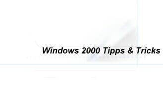 Windows 2000 - Hier finden Sie News zu Microsoft Windows Windows 9x / Me / 2000 / Server / XP Vista und entfernen Sie Viren und Spyware (kostenlos).Spyware belastet Ihren Rechner? Sie möchten über aktuelle Virengefahren oder Windows News informiert werden? Windows-Tweaks ist die Antwort! Wir bieten Windows Systemtuning, Viren- und kostenlose Spyware-Entfernung für jeden Computer mit Windows Betriebssystem.. Obwohl ein Computer mittlerweile recht leistungfähig und sicher ist, kann man mit einigen Methoden noch mehr Ressourcen aus ihm rauskitzeln und ihn vor Spyware, Viren und Co. durch z.B. Spyware Schutz bzw. Spyware Programme schützen Windows Tweaks bietet ihnen: Tipps & Tricks, Anleitungen, kostenlose Spyware Downloads, kostenlose Spyware Entfernung und Windows Security für Ihren Heim Desktop-PC, Ihr mobiles Notebook aber auch für Ihren Highend Computer. |