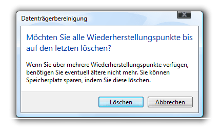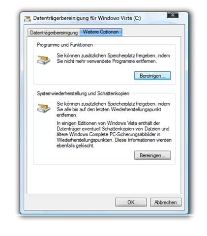 In regelmäßigen Abständen legt Windows Vista einen Wiederherstellungspunkt an: Das geschieht beispielsweise bei Treiber- oder Programminstallationen oder nach der Einrichtung der neuesten Windows Updates. Diese Wiederherstellungspunkte kosten natürlich Speicherplatz. Mehr Speicherplatz kostet die so genannte Volumenschattenkopie, bei der (zunächst) unsichtbare Kopien Ihrer Dateien an. Damit können Sie auf ältere Versionen einer Datei (z.B. einem Dokument) zugreifen! Beide Funktionen dienen der Datensicherheit – wenn Sie jedoch Ihr System mit anderen Mitteln sichern, kosten beide Methoden unter Umständen mehrere GByte Speicherplatz! Und so lösen Sie das Problem: