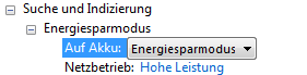 Bei "Suche und Indizierung/Energiesparmodus" klicken Sie unter "Auf Akku" auf den "Energiesparmodus".