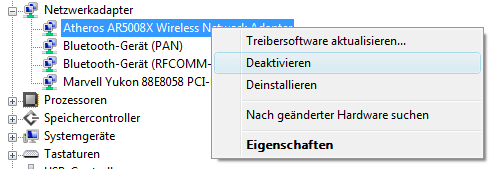 In der Kategorie "Bildverarbeitungsgeräte" befinden sich meist Webcams oder angeschlossene Digitalkameras. Wenn Sie diese mobil nicht benötigen, sollten Sie auch diese abschalten. Bei "Bluetooth-Funkgerät" können Sie auch alle Einträge deaktivieren, wenn Sie unterwegs kein Bluetooth verwenden. Unter "IEEE 1394 Bus-Hostcontroller" können Sie die Firewire-Schnittstelle Ihres Notebooks abschalten, wenn Sie diese nicht zwangsläufig verwenden. Dasselbe gilt auch für die Kategorie "Netzwerkadapter". Hier sparen Sie besonders viel Strom, indem Sie sowohl den WLAN- als auch den normalen Netzwerkadapter ausschalten.