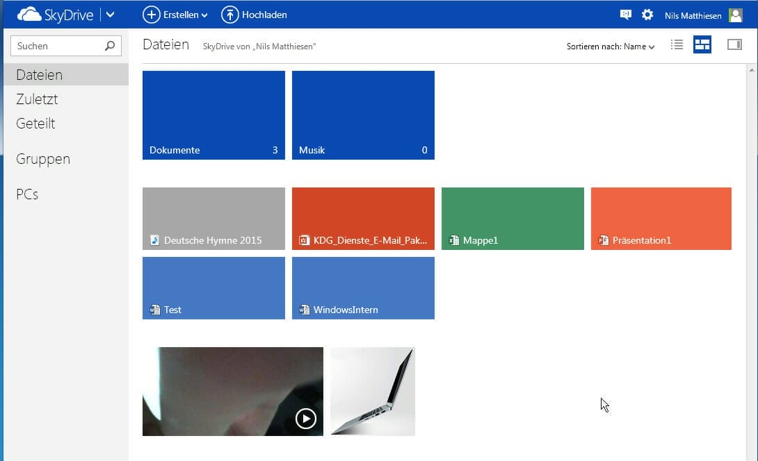 Microsofts SkyDrive ist eher der typische Vertreter des Typs „Internetfestplatte“. Sie speichern Ihre Daten nicht auf Ihrem PC, sondern im Internet. So lassen die sich von jedem Internet-PC abrufen und bearbeiten – egal, ob es sich um Texte, Tabellen, Bilder, Musik oder Videos handelt. Inzwischen klappt das mit auch mit so gut wie jedem Smartphone: In Windows Phone ist SkyDrive ab Werk integriert, seit einiger Zeit bietet Microsoft auch Apps für iPhones, iPads und Androiden. Neben der aufgepeppten Oberfläche hat Microsoft neuerdings auch das Upload-Größenlimit von 100 Megabyte auf 2 Gigabyte aufgestockt – das war auch dringend nötig.