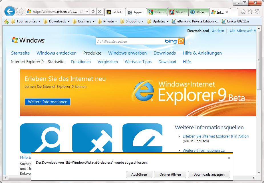 Vor wenigen Stunden ist Microsofts neuer Browser erschienen, Internet Explorer 9 Beta! Ziel: Schmaler, effektiver, schneller. Den Download gibt’s gleich hier: