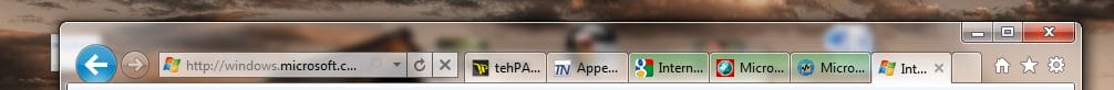 Die neue Internet Explorer 9 Oberfläche: Schickes, aufgeräumtes Design. Der Fokus soll nicht mehr auf dem Browser, sondern nur auf dem Inhalten liegen!