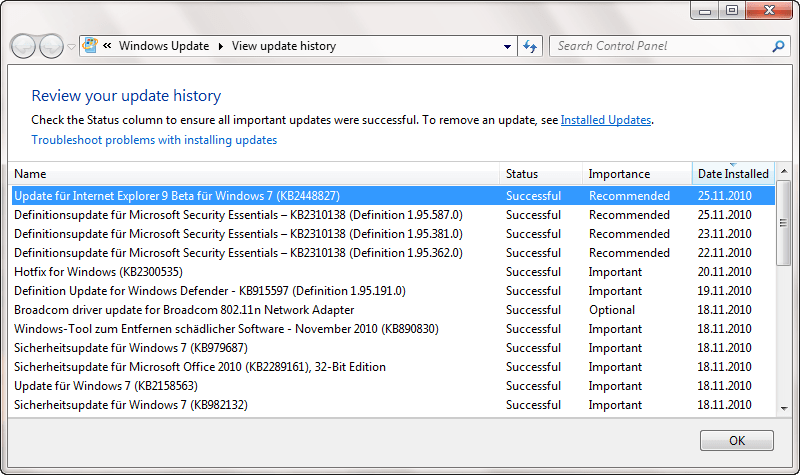 Das Update soll einige Fehler beheben und die Zuverlässigkeit des Browsers erhöhen – welche Probleme genau aus dem Weg geräumt werden, verrät Microsoft leider nicht. Prüfen Sie also unbedingt im Windows Update-Programm (siehe “Alle ProgrammeWindows Update”, ob die Aktualisierung für IE9 Beta verfügbar ist. Falls nicht, gibt’s das Einzelpaket gleich hier zum herunterladen.