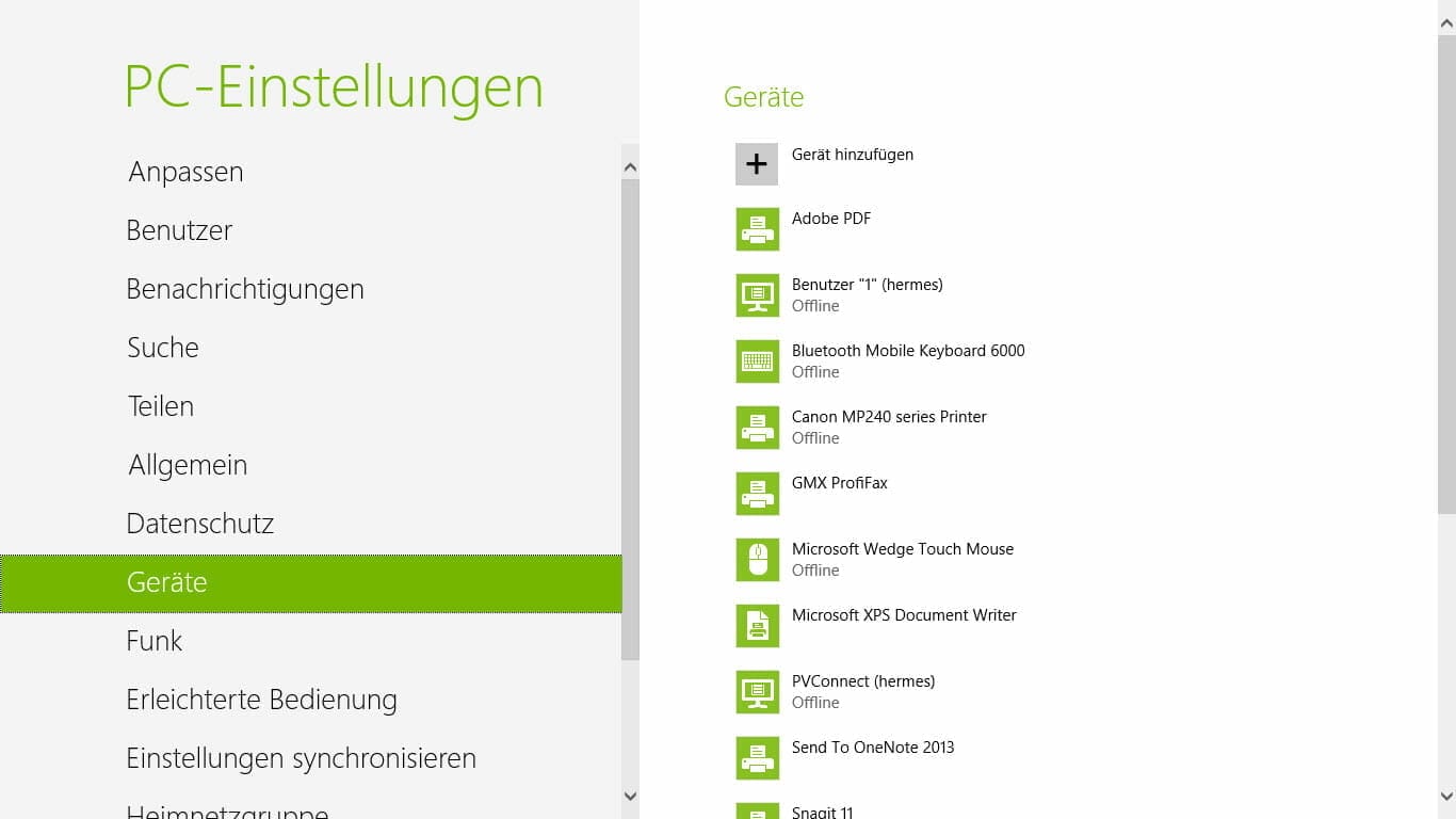 Jetzt klickt man im linken Bereich auf die Gruppe „Geräte“.